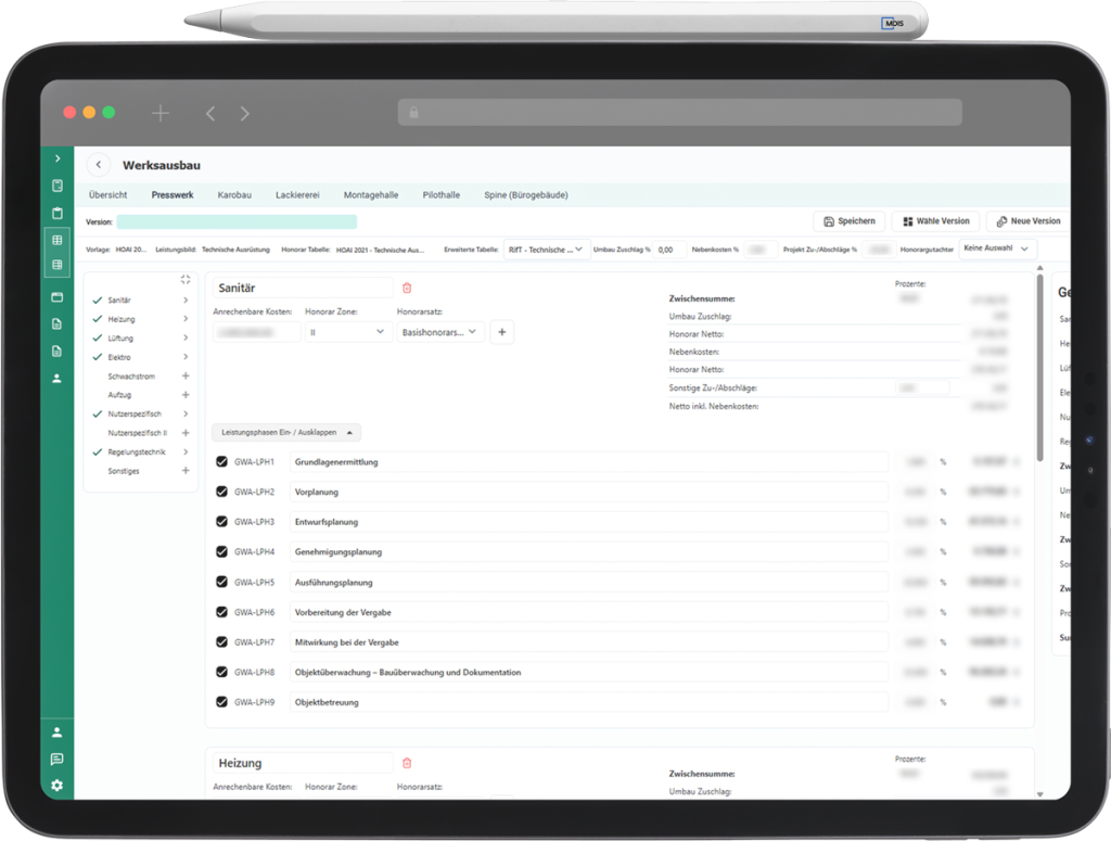 Honorix-App: Der Konfigurator für Leistungsverzeichnisse, HOAI & Projektkalkulation