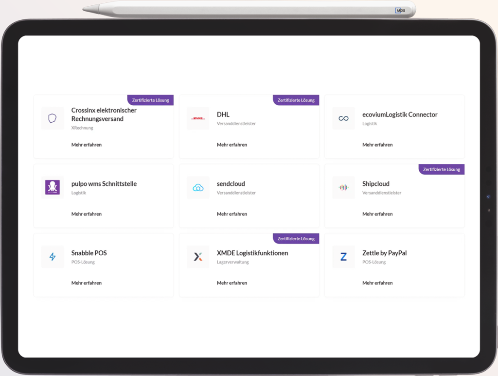 DHL, Shipcloud, Shopify POS, Snabble POS, Procuros Order-to-Cash, XMDE-Logistikfunktionen