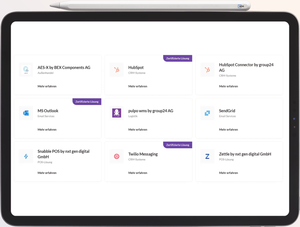 Dank zahlreicher Schnittstellen und Erweiterungsmöglichkeiten entsteht ein reibungsloser Datenfluss zwischen ERP, CRM und E-Commerce-Plattformen – für mehr Effizienz, weniger Fehler und eine bessere Customer Experience.