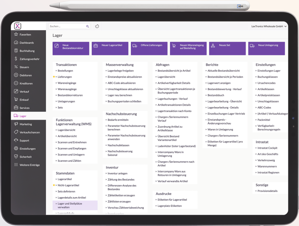 In diesem Bereich erhalten Sie einen Überblick über die wichtigsten Funktionen unseres Warenwirtschaftsmoduls. Entdecken Sie, wie Sie Ihre Lager-, Einkaufs- und Vertriebsprozesse digitalisieren, optimieren und effizient steuern können.