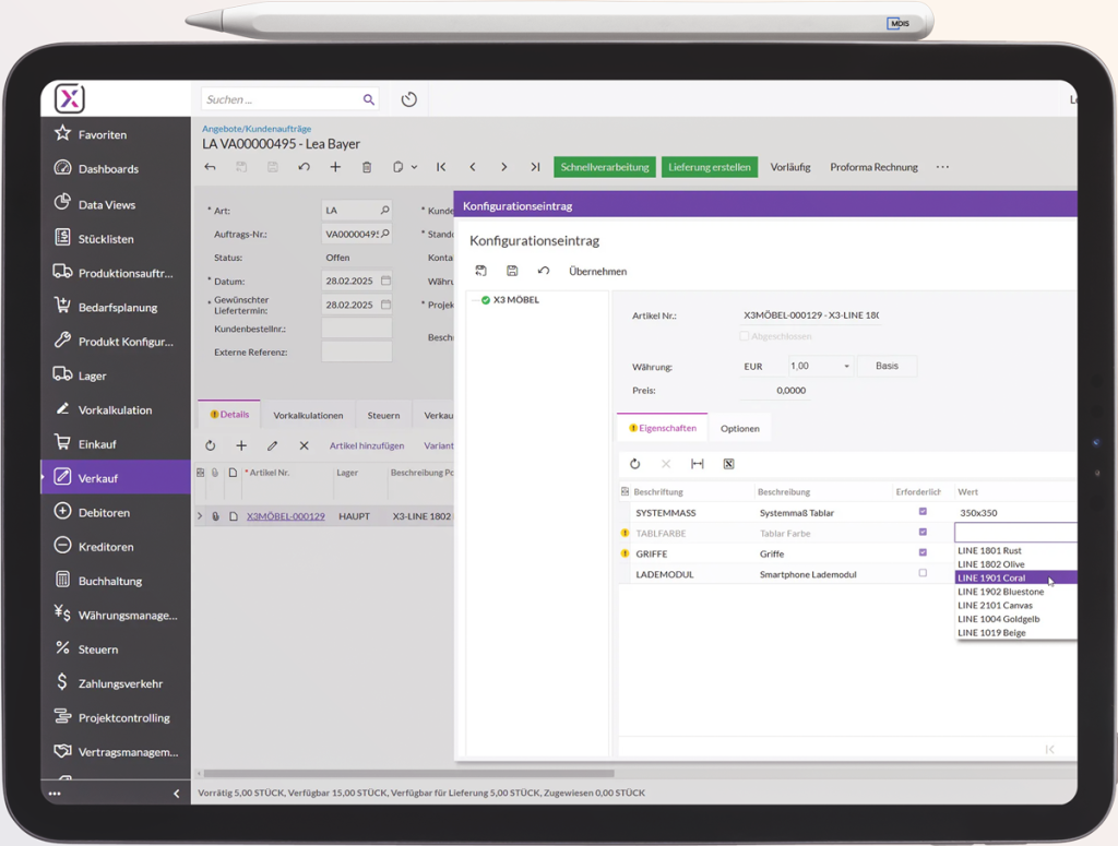 Erstellen und verwalten Sie komplexe Produktvarianten einfach und strukturiert. Der Produktkonfigurator von Haufe X360 ermöglicht es Ihnen, individuelle Konfigurationen effizient abzubilden und direkt in Angebote sowie Kunden- und Produktionsaufträge zu integrieren.
