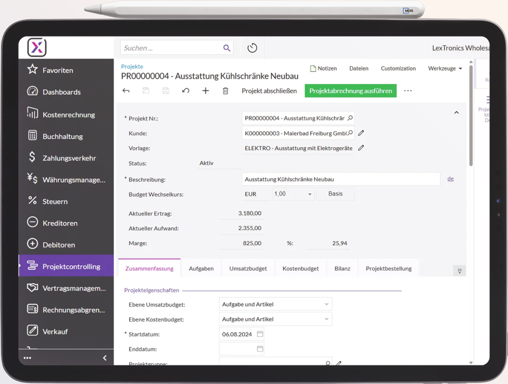 Buchung aller relevanten Vorgänge direkt auf Projekte und Projektaufgaben