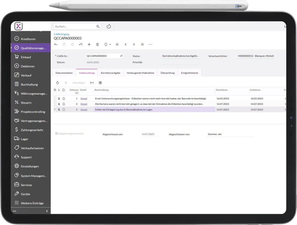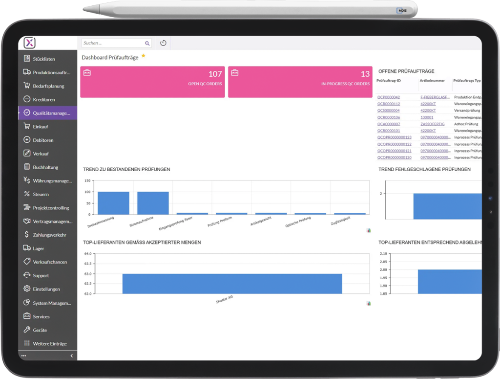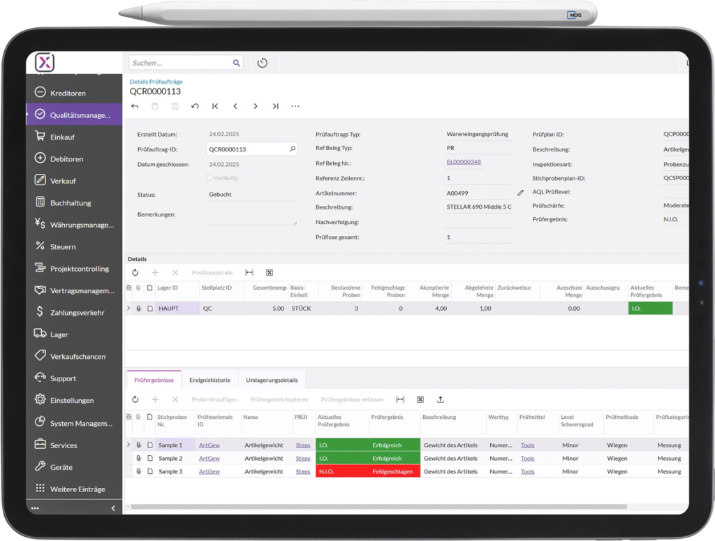 Entdecken Sie die leistungsstarken Funktionen unseres vollständig in das ERP-System integrierten Qualitätsmanagement-Moduls
