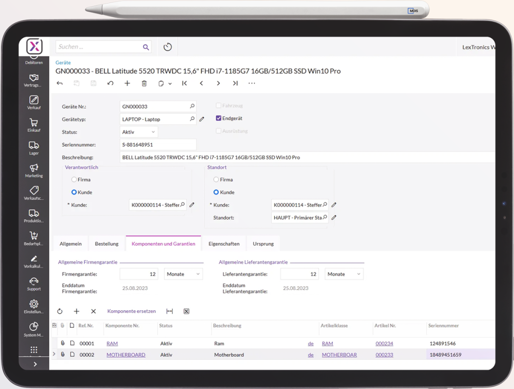 • Verwaltung von Kundengeräten und Komponenten im Servicekontext