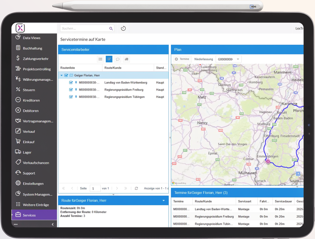 Planen Sie Serviceeinsätze präzise mit Plantafel, Routenplanung und Ressourcenmanagement – für optimale Abläufe im Außendienst.
